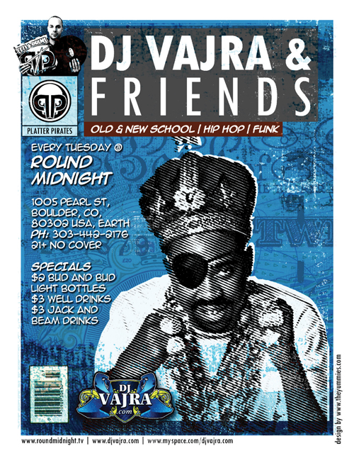 Tuesday, 6/26-> Don’t miss me spinning a special guest set alongside the one and only DJ Vajra (one of the world’s best turntablists, ask the DMCs) at Round Midnight in Boulder (1005 Pearl Street). Last time me and Vajra got together we tore down the X-Games Kickoff Party in Aspen, come check us this Tuesday for some certified next shit. We’ll be spinning the best in new & old school hip hop plus some funk & soul. Doors at 10/21+/no cover.