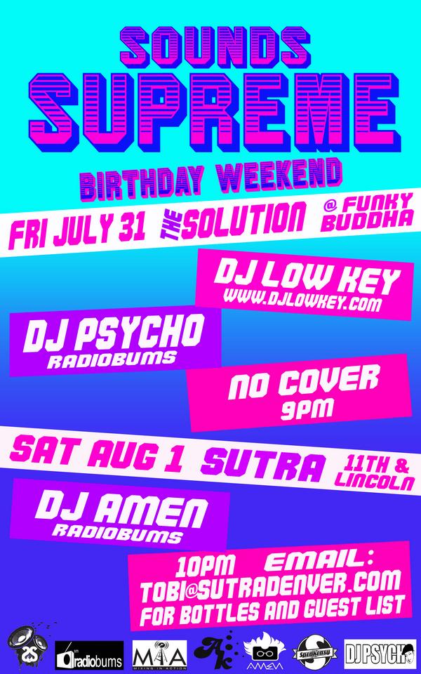 P.S. While I’m gone this weekend, all of my weeklies will still go on the same as always, with some of my favorite DJs in Denver filling in for me. Of course, Sounds Supreme will be holding it down at the Solution with a special guest DJ on Friday. Then DJ Lazy Eyez & Amen will be spinning on Saturday at So Damn Down at Shag and I’ll be back on Sunday for Hapa Life (come by and hear about the shows over sake and sushi…LOL).