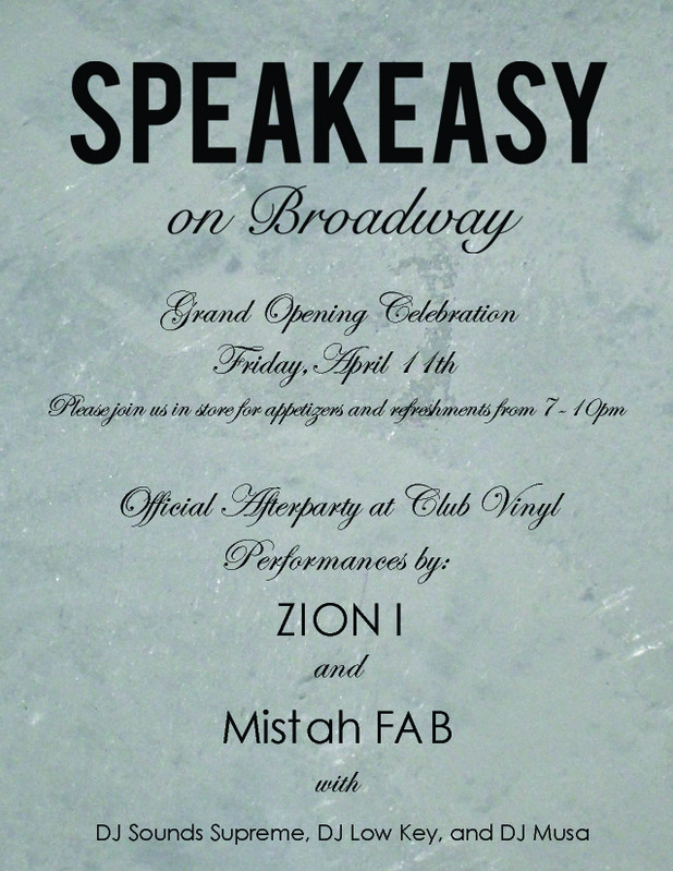 Friday, 4/11->Speakeasy Grand Opening Afterparty w/Zion I, Mistah F.A.B., DJ Low Key, Sounds Supreme & more + B-Boy Planet Premier Afterparty at Vinyl