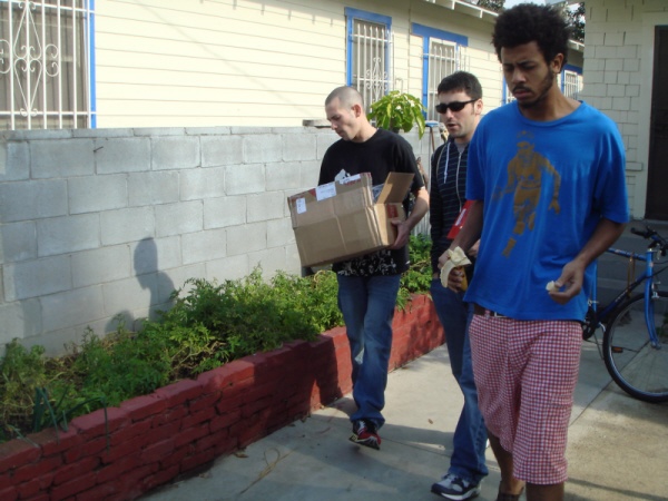 After a long day and night of prep work, scouting locations, dealing with unexpected complications and a late night blog, day 2 started bright and early with… a two hour delay in renting a crucial lense we needed to start filming. Not being the type to waste time, we picked up a big box of free gear (big up Akomplice, 10 Deep, Estate LA and Strictly Fitteds for all blessing us for the shoot, thanks again) and the crew headed over to get things setup at our first location, Blu’s house and soon after the lense showed up.